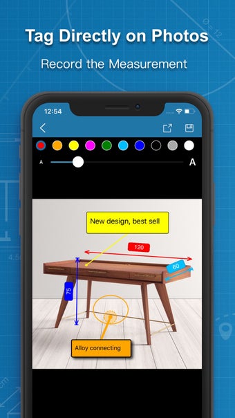 PhotosMeasure ช่วยให้คุณแท็กขนาดหรือแสดงความคิดเห็นเกี่ยวกับสิ่งใดบนภาพได้ในไม่กี่วินาทีและผลลัพธ์จะถูกเก็บไว้ในแอปอัตโนมัติ นอกจากนี้คุณยังสามารถเพิ่มแท็กมากกว่าสองตัวในภาพเดียวกันได้